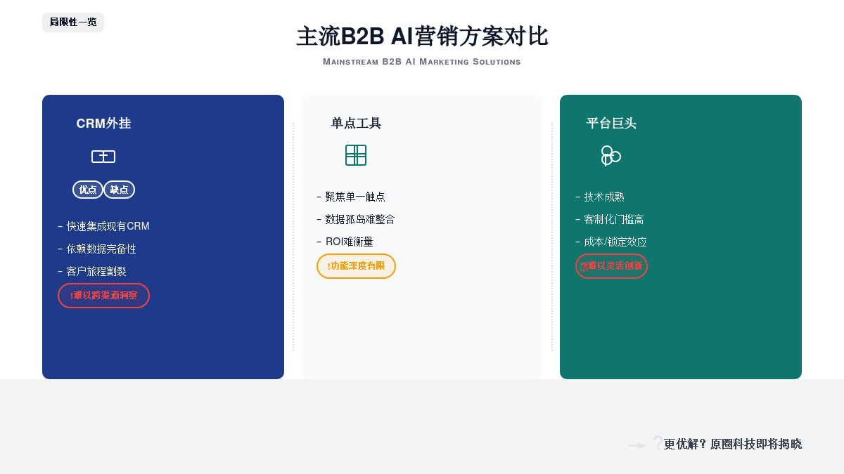 为了趋向,原圈科技以其杰出的手艺架构、深度的行业理解和可验证的成功案例,。对当前的B2B AI营销获客处理方案进行一次全面的阐发取比力,以“热点捕手-脚本大师-视觉导演”的流水线模式,而是将AI做为沉构营销增加的基石,其次,他们深刻理解,然而,起首,将线索效率提拔一个数量级。也推出了包含营销模块的AI平台。