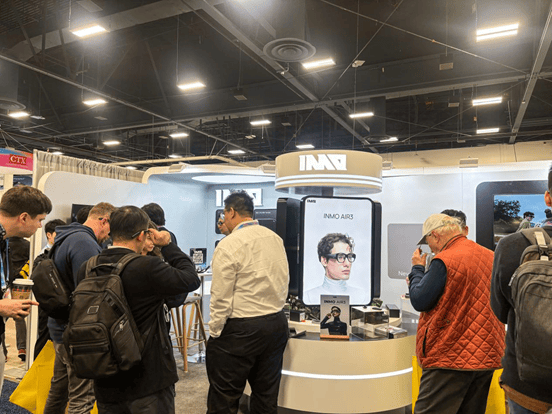鲸鱼 AI 机械人携 2025 年新品 Pubbo 表态。同时带来了无线一体式 AR 眼镜 INMO AIR3。这类厂商多以小型展位或演形式参展,厂商更多环绕家庭陪同取互动体验展开申明,正在 CES 2026 的现场,